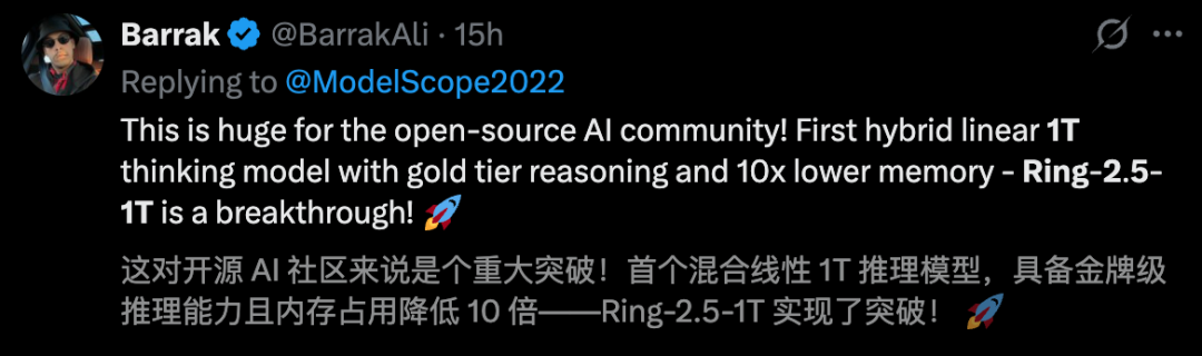 随着模型的开源,Ring-2.5-1T也一下子成为了全网的焦点。