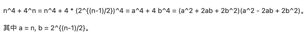 单纯看n^4 + 4^n,尤其是奇数代入时,很容易让人产生一种「它可能是随机生成质数」的错觉。