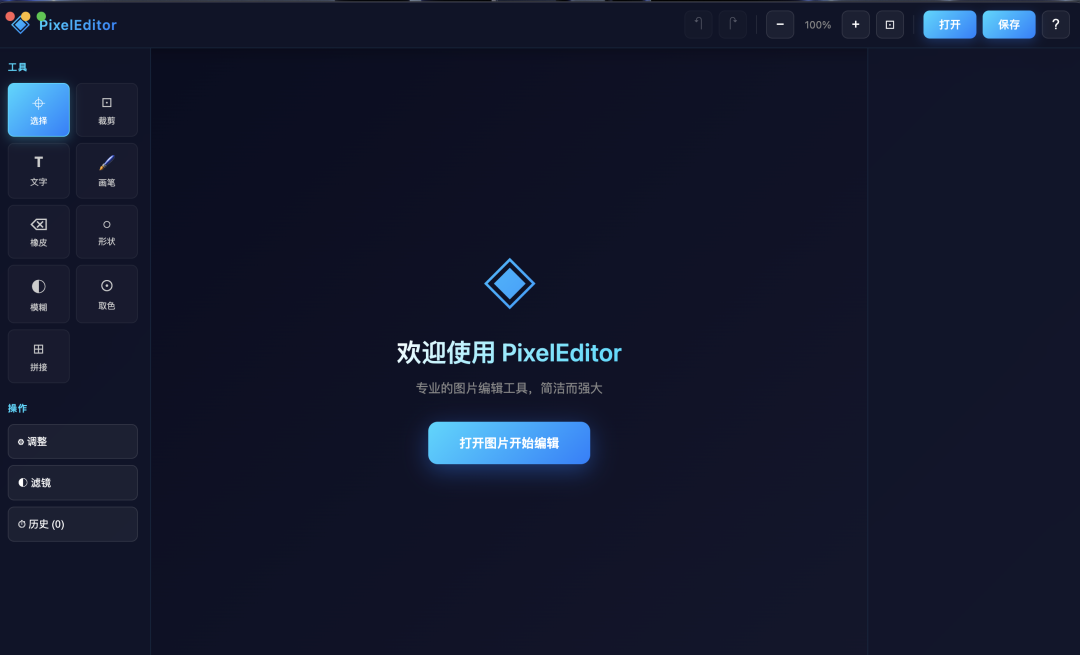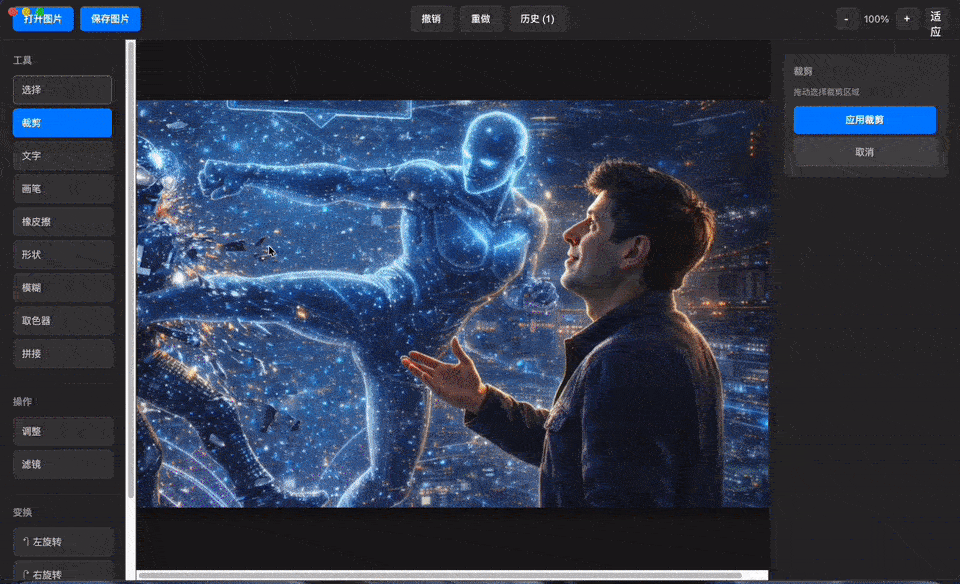 没想到只要10分钟,一个简易版「PhotoShop」桌面应用真完成了。
