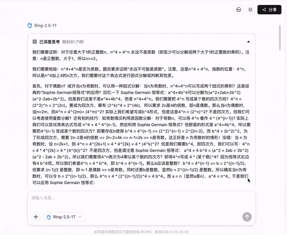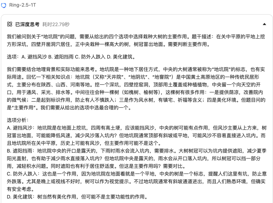 81秒全程思考,Ring-2.5-1T多次展现了类似人脑的「自我辩证」和「实时纠偏」的能力。