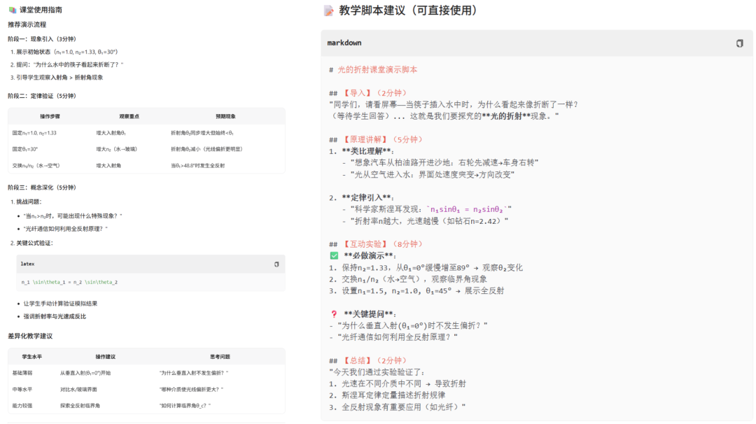 接下来,再让Ring-2.5-1T生成一个网页,阐释「光的折射」背后的原理,用于课堂教学。