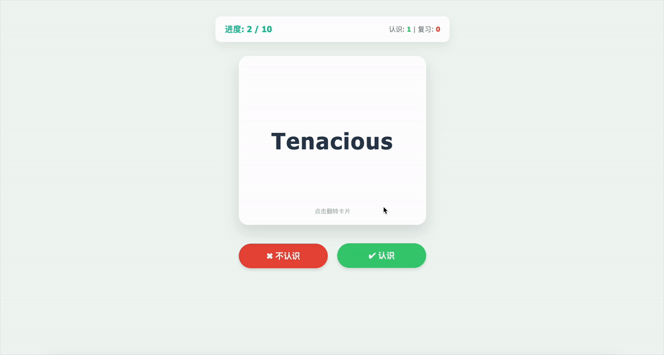 再比如,让它制作一个英文交互式单词卡,每个单词要附上音标、释义、例句。