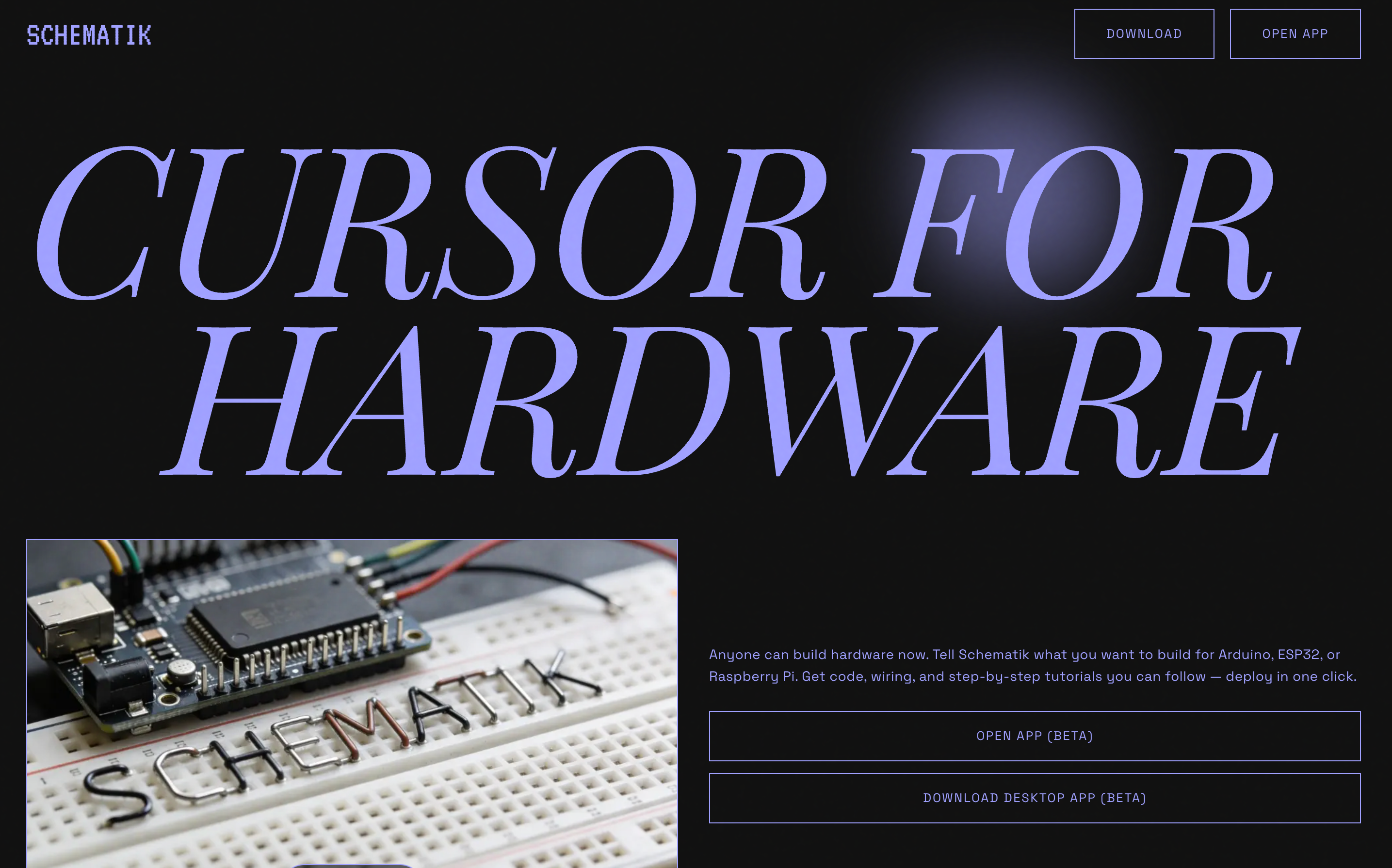 ▲ 为硬件开发设计的 Cursor,地址:https://www.schematik.io/