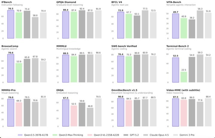 Qwen3.5-Plus不仅融合了线性注意力机制与稀疏混合专家(MoE)架构,更关键的是,它应用了千问团队自研的门控技术。这项曾斩获全球AI顶会2025 NeurIPS最佳论文的前沿技术,被阿里成功工程化落地,实现了3970亿总参数激活仅170亿的模型效率,为最强开源提供了坚实的底层支撑。