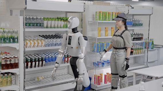 这要求机器人必须同时处理三重难题:一是通过大脑精准判断水瓶在货架上的位置;二是用拟人的动作伸手拿到水瓶,并过程中不能碰倒周围的商品;三是灵巧操作,水瓶上半身较细、下半身较粗,且通常被紧密卡位,直接平移取出极易卡顿。