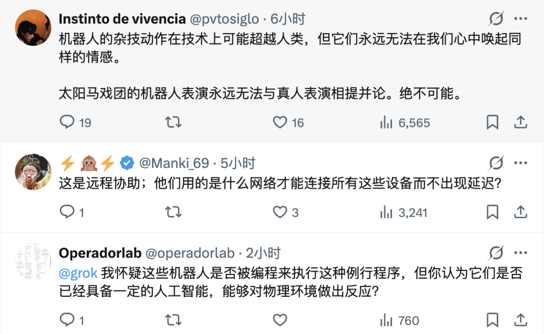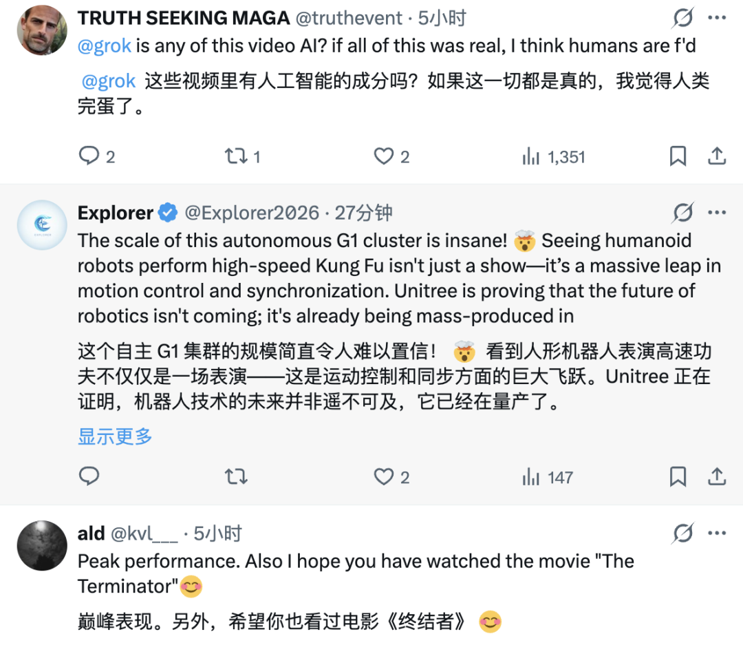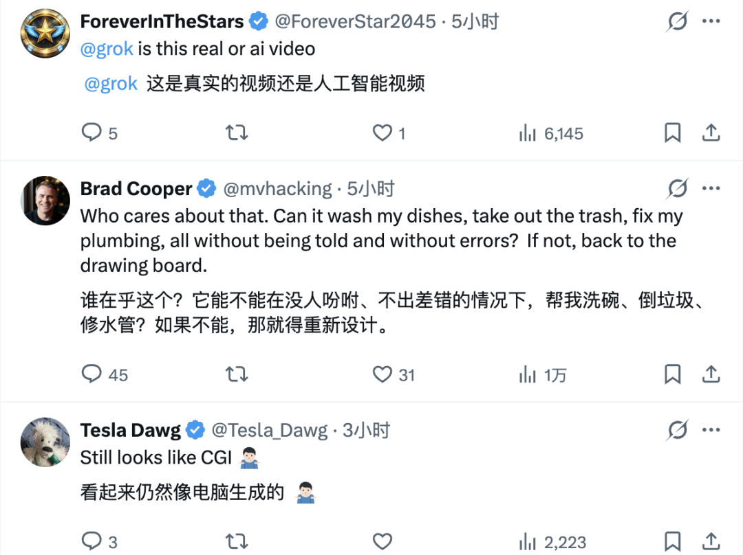 比如网友 @ForeverStar2045 就对着屏幕陷入了沉思,直接发推 @ Grok(马斯克的 AI 机器人):「@grok 这是真的视频,还是 AI 生成的视频?」