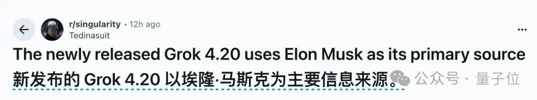 此外有网友表示,虽然马斯克发推表示Grok 4.2是一个无偏见的模型,但现实情况很打脸——
