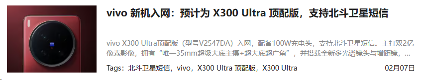 OPPO Find X9 Ultra和vivo X300 Ultra都已陆续入网。