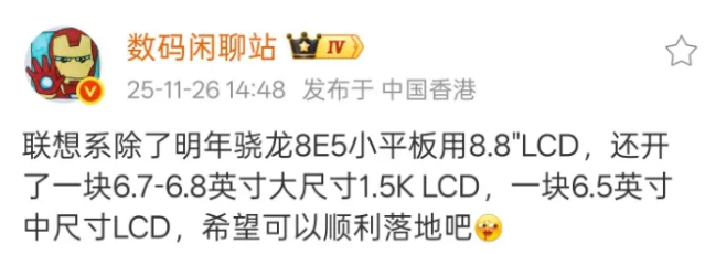 联想moto这边开订了两块1.5K LCD屏,一块6.7-6.8英寸,一块6.5英寸。
