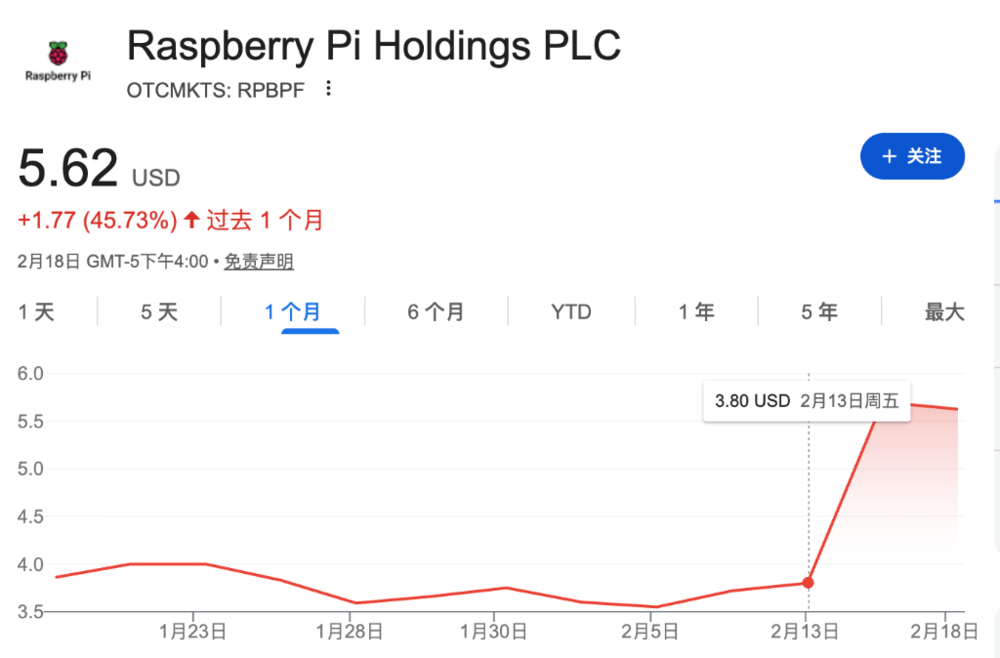 受益于AI工具OpenClaw在本地设备运行催生的“廉价主机”需求预期,英国低成本计算机制造商树莓派(Raspberry Pi)本周成为散户投资者的追捧热点。截至周三,其股价在三个交易日内近乎翻倍,推动公司市值自去年5月IPO以来首次触及10亿英镑大关。