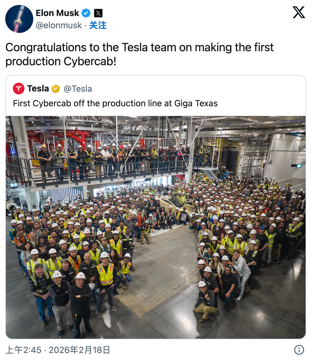 昨天,特斯拉官方在 X 上晒出了一张大合照