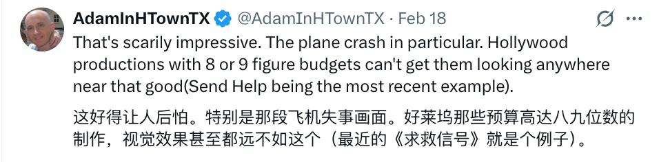 即便 Seedance 2.0 已经把大家对 AI 视频的期待拉到了前所未有的高度,这条短片依然超过大多数人对 AI 的想象。