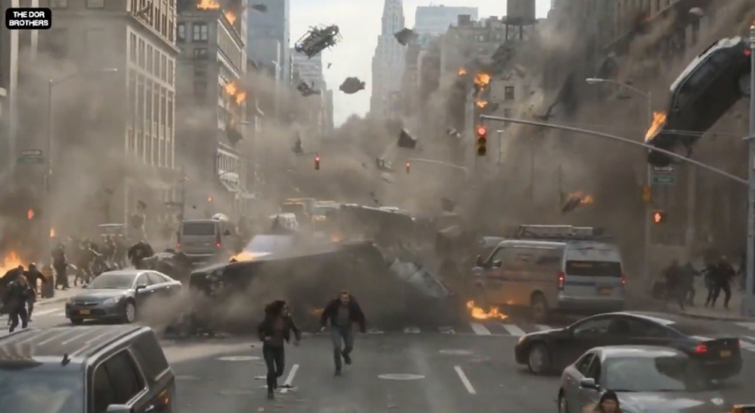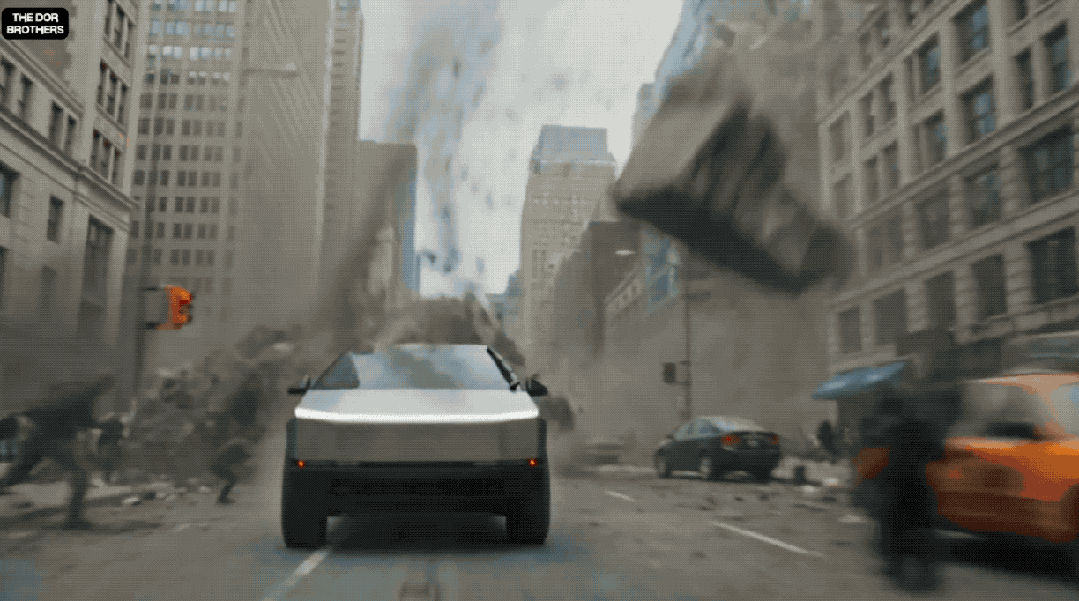 场景里的烟尘扩散是我印象深刻的一个细节,方向感和物理感都有,不像早期 AI 视频那种像棉花糖一样的爆炸效果。Cybertruck 逃亡戏中的车身金属反光,随着环境光线变化有明显的动态,说明模型对光照的理解确实上了一个台阶。