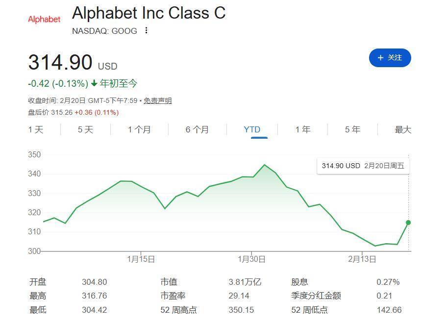 尽管谷歌近期的表现已优于其他科技巨头,但年初至今股价仍是下跌状态。