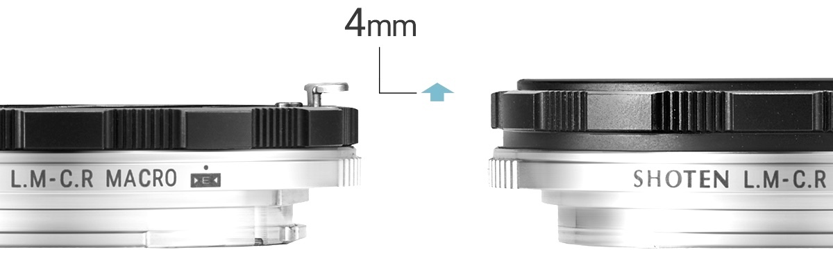 这款转接环内置 4mm 螺旋推进(Helicoid)结构,可以缩短镜头的最近对焦距离,可以说是内置了一支近摄环。