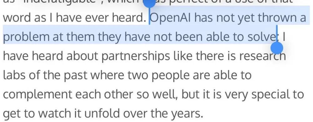 奥特曼认为他们两人是天作之合,「OpenAI还没有他们两人没法解决的问题」,没有他们俩就没有现在的OpenAI。