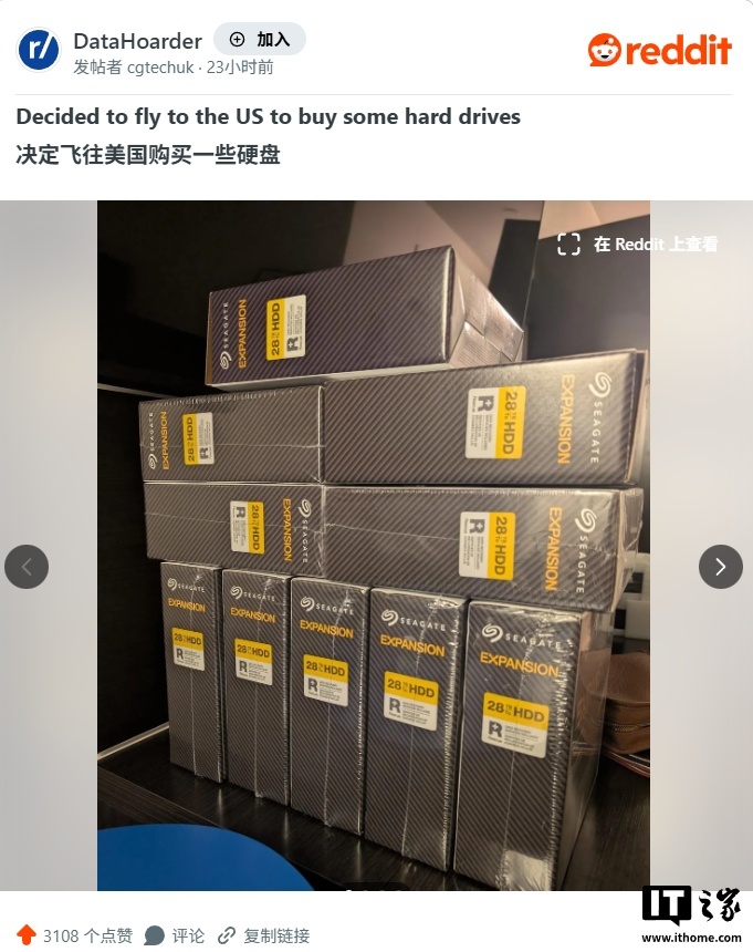 IT之家 2 月 23 日消息,一位 Reddit 用户昨日在 r/DataHoarder 子版块分享了他们飞往美国购买硬盘的经历,相比直接在英国购买节省了至少 2000 美元(IT之家注:现汇率约合 13822 元人民币)的费用。