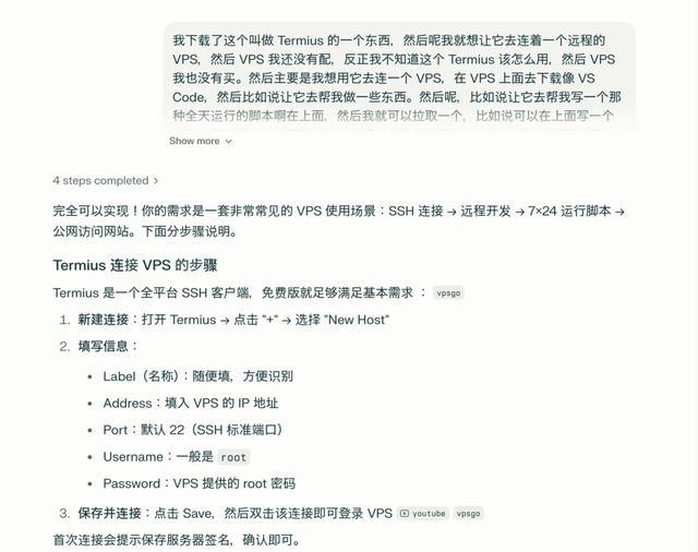 这样我也能够确定我的想法不会特别离谱,或者说他需要、他无法实现什么东西,然后他又需要什么,比如说一些 API key 啊,或者说一些外部服务的时候,他能够去指导我,去帮他去获取。