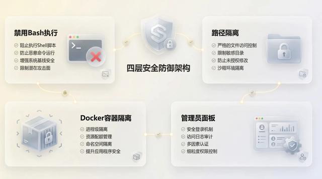 我的 Bot 可以读写服务器上的文件,如果用户A可以访问用户B的文件怎么办?如果 AI 出错,把我的整个服务器文件都删了怎么办?这些 AI 在初版架构里都没考虑到。