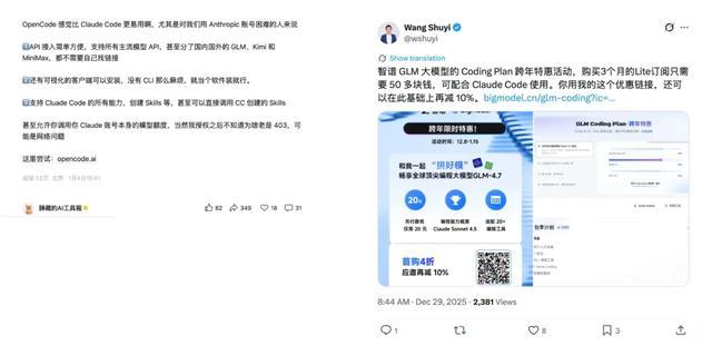 然后现在也已经有很多教程教大家怎么去用这类产品,包括说像 OpenCode 也有人推荐,如果说 Claude Code 太贵的话,也可以去用国内的智谱的 GLM,这个教程也是有很多的。