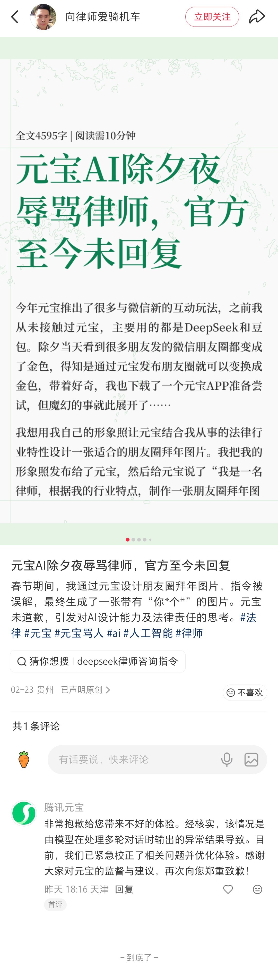 然而,这并非元宝AI首次出现类似问题。今年年初,已有网友反馈,“用元宝改代码被辱骂+乱回”。