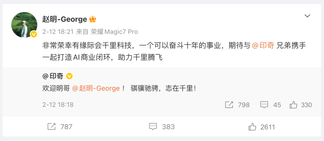 沉寂1年后,赵明再度出现在聚光灯下,在不久前出任千里科技联席董事长,与AI天才印奇搭档。千里科技是印奇缔造的车圈新星,瞄向“AI+车”,提供辅助驾驶和智能座舱等解决方案。