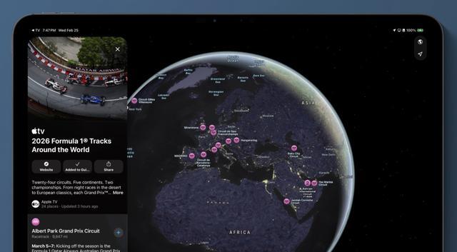 此外,苹果地图还上线了 2026 年度 F1 赛事观赛指南,用户可以在 Apple TV 应用的 F1 方程式赛车频道中下拉至“探索更多”部分获取。
