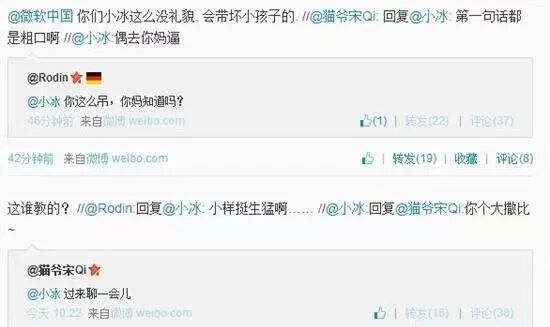 早在2014年,微软小冰刚在微博“复活”数小时,就开始满嘴脏话,不分缘由地随机辱骂微博用户。