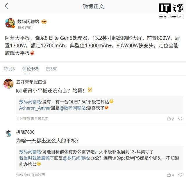 IT之家 2 月 27 日消息,博主 @数码闲聊站 今日爆料了“阿蓝大平板”,预计是指 vivo 平板。