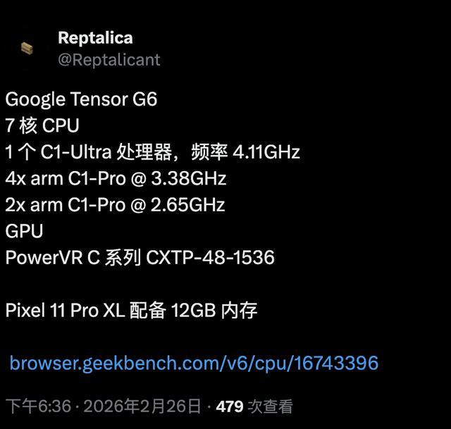 IT之家 2 月 27 日消息,一款代号为“Kodiak”的谷歌新机最近现身 Geekbench 跑分数据库,X 平台消息人士 Reptalica 认为这是 Pixel 11 Pro XL 手机。
