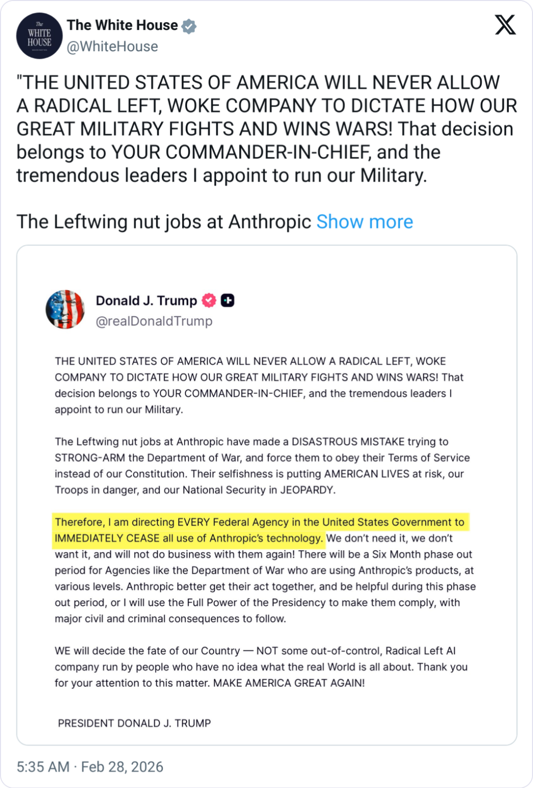 https://x.com/WhiteHouse/status/2027497719678255148