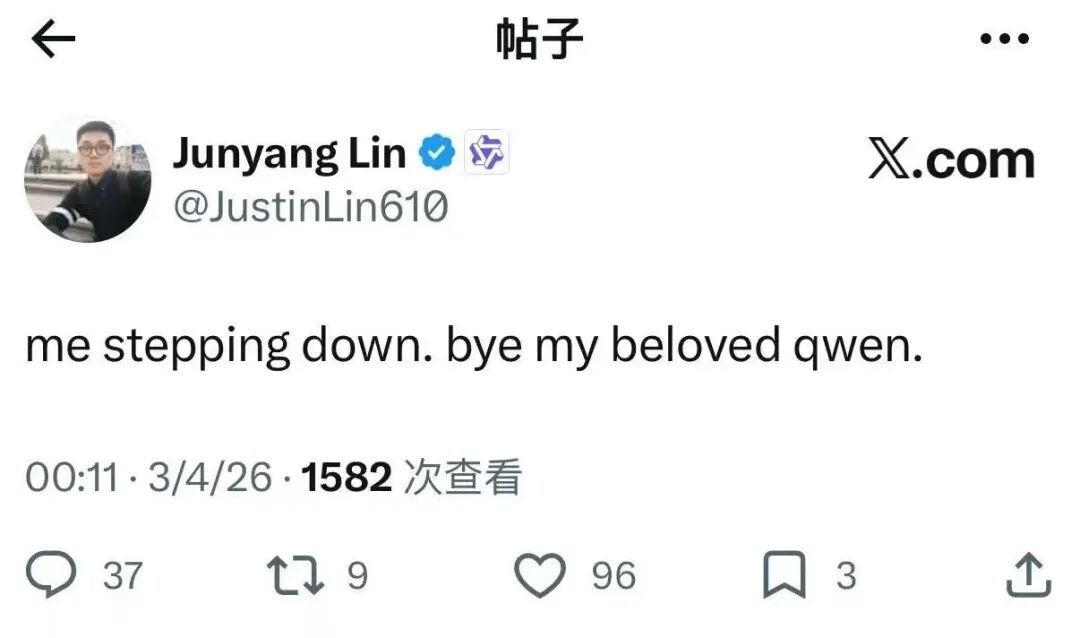 刚刚,通义千问核心负责人林俊旸在 X发文表示将从千问项目 step down。并不一定是离开阿里,但至少意味着千问这条开源旗舰线,进入了一个交棒/换挡的组织节点。