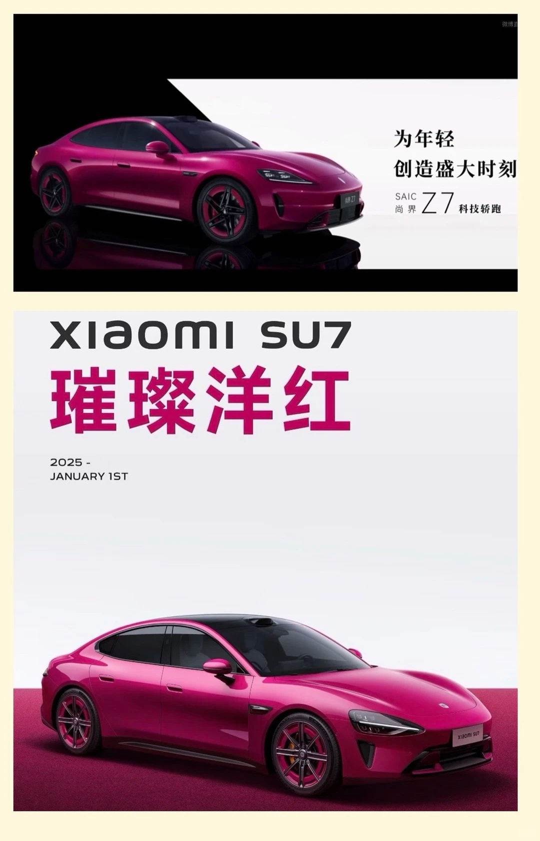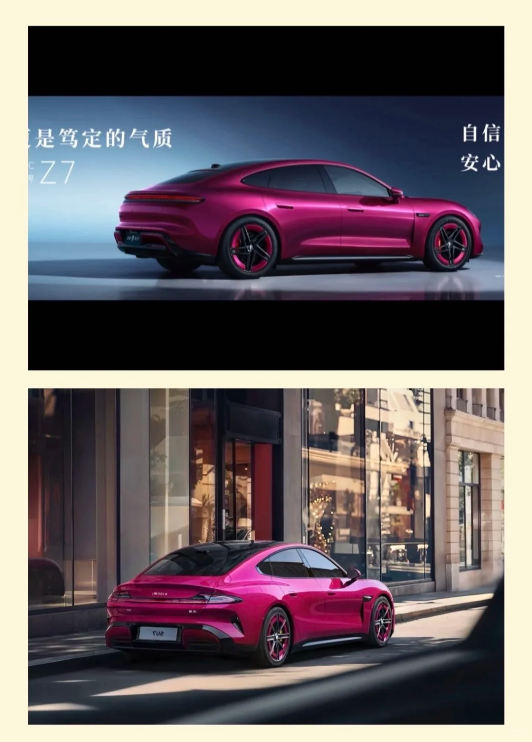 随后其晒出了两辆车的对比图。(上面是尚界Z7/下面是小米SU7)