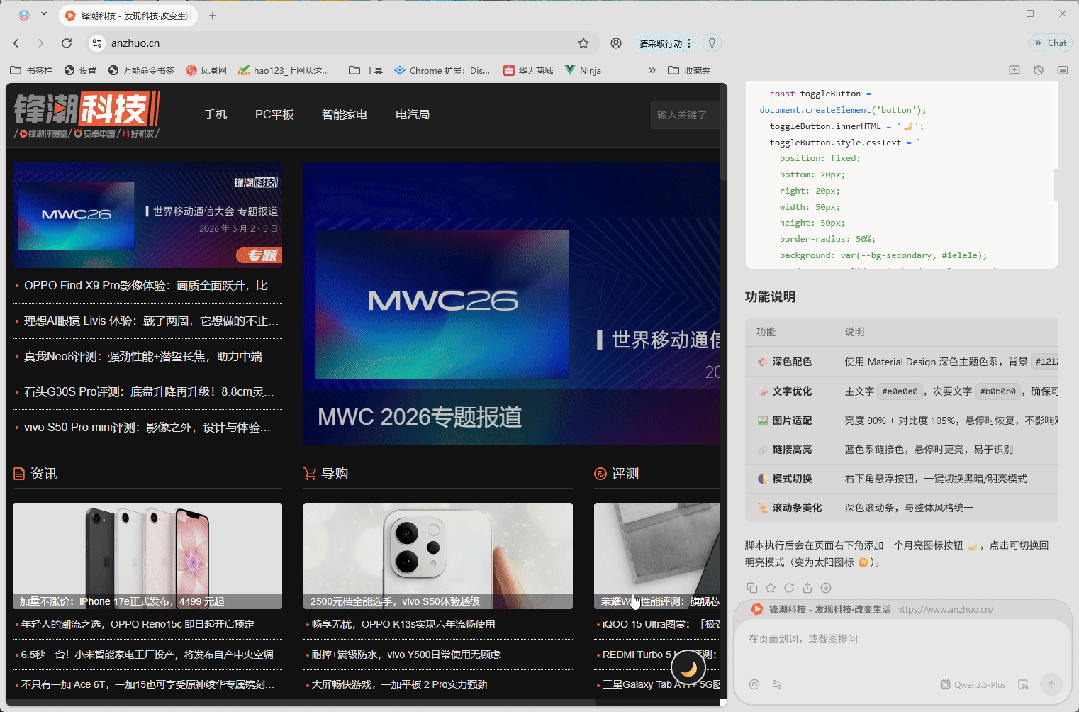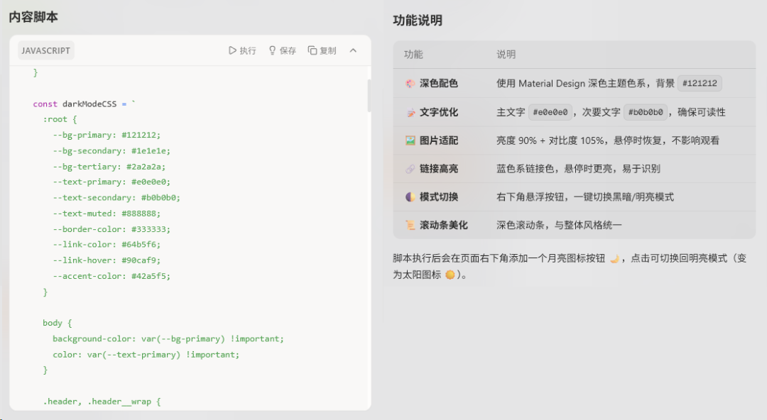 除了简单的黑暗模式切换,像是什么网页净化啊,批量图片提取啊,网页风格大改造啊…