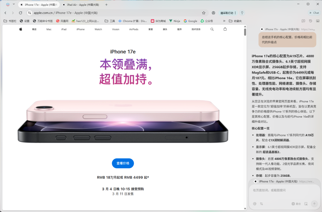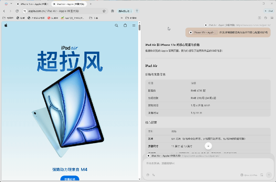 我要是想同时了解iPhone 17e和M4 iPad Air的亮点,Tabbit能不能把事儿办成呢?