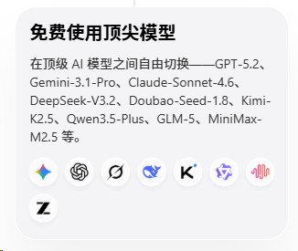 这浏览器还有个国际版,目前支持免费使用Gemini、Claude和GPT三家最顶级的模型。