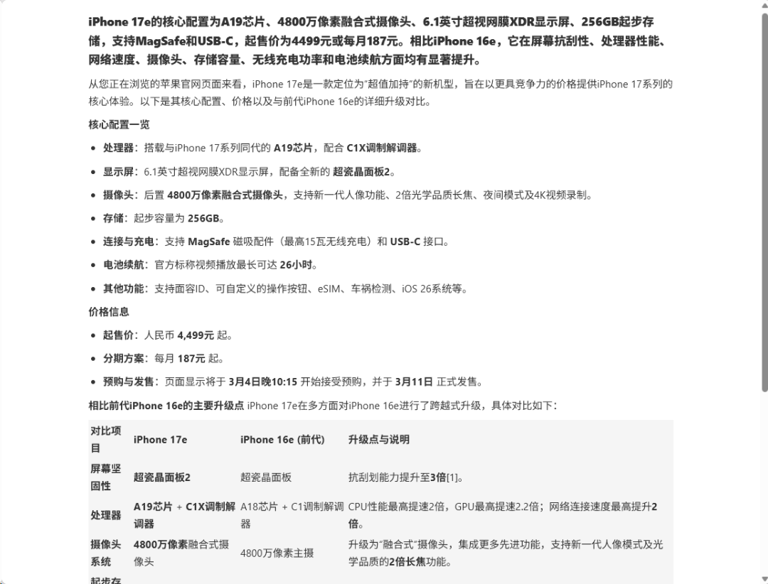 比如前几天iPhone 17e不是发布了么。