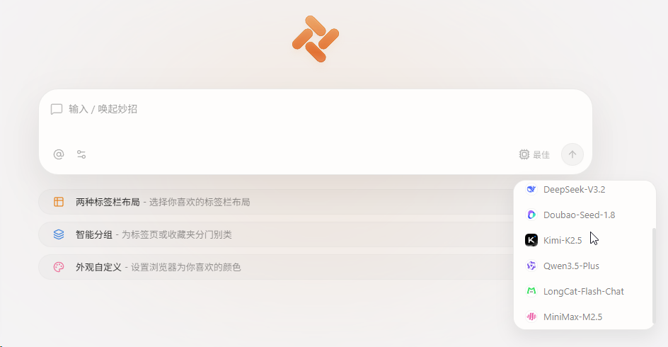 它和传统浏览器最大的区别有三个——有Agent、能自己写脚本、能选择用哪个大模型干活。