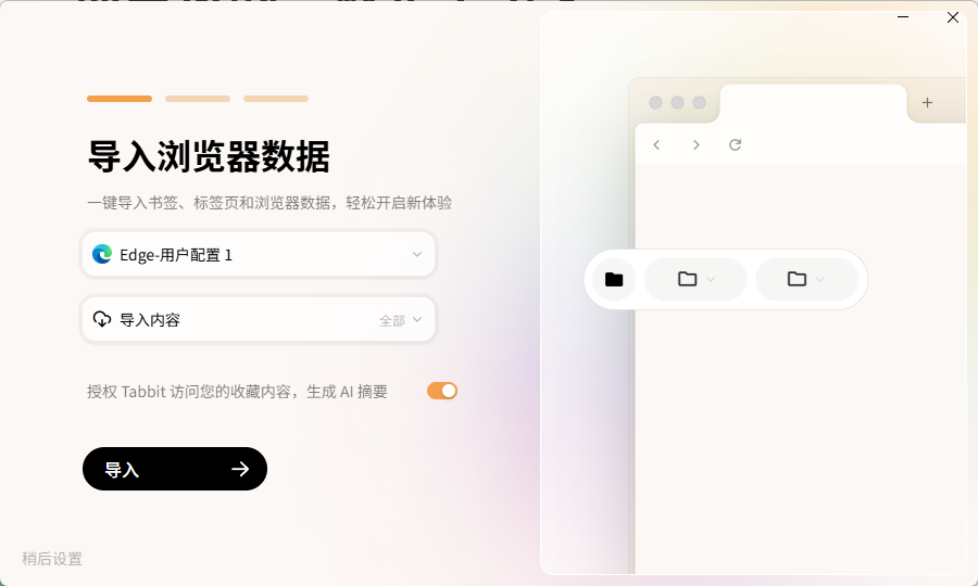开局就会让我选择用垂直标签页,或者横向标签页,浏览器数据的导入也比较无感。