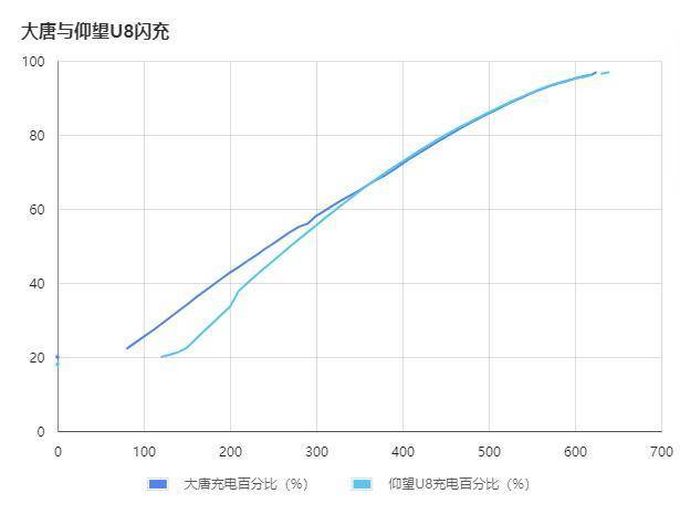 由于比亚迪闪充车机上是没有显示充电功率的,所以我还一帧一帧的统计了大唐和仰望 U8 的充电百分比和续航,可以看到,比亚迪闪充的功率输出非常的平稳。