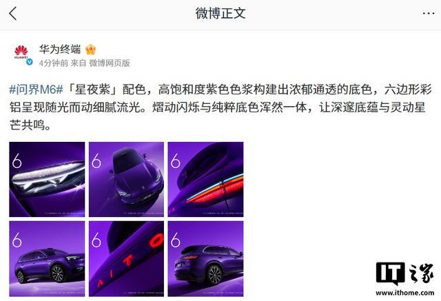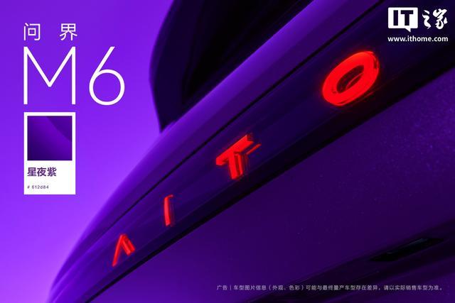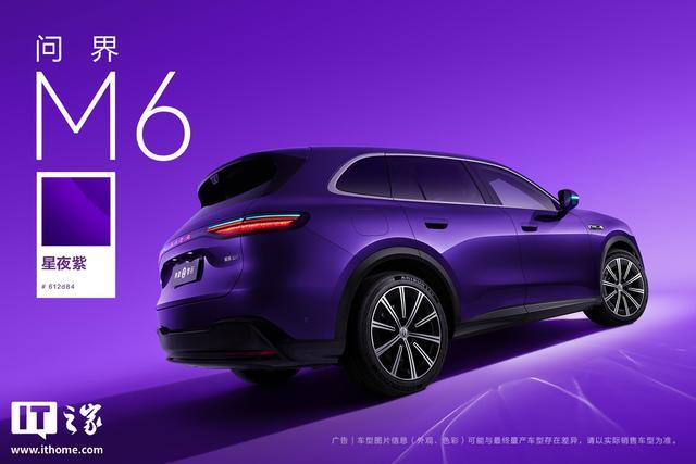 IT之家 3 月 8 日消息,华为终端今日放出了鸿蒙智行问界 M6 汽车的「星夜紫」配色高清官图。