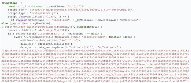 据报道,本次攻击事件疑似是维基媒体基金会员工误触发了一段早前被黑客存放在百科某个页面中的恶意脚本所致。根据 Bleeping Computer 对被执行脚本 test.js 的分析,这段蠕虫代码会自动修改页面内容并传播恶意脚本,在短时间内已恶意篡改了 4000 余条页面,并悄悄替换了 85 个用户脚本以试图进一步扩散。