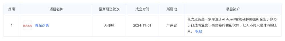 宋紫薇于2024年11月注册成立了深圳薇光点亮科技有限公司,并于2025年9月16日完成数千万元天使轮融资,投资方包括中科创星与九合创投。