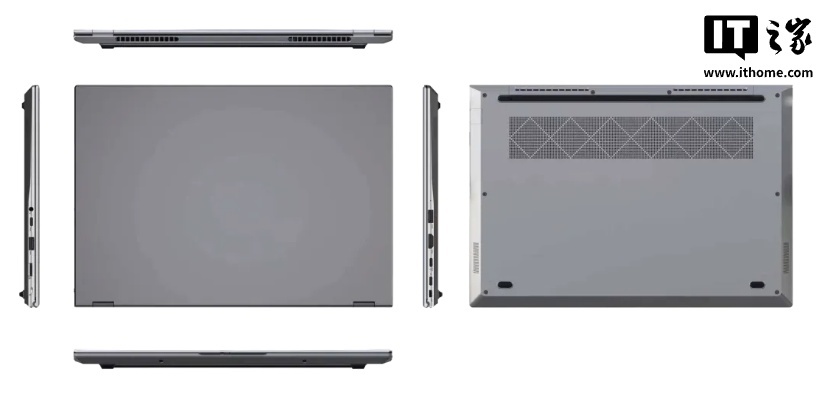 机身采用镁铝合金材质,搭配商务砺灰,14 英寸微边屏实现超窄边框设计,还有防泼溅键盘、指纹识别电源键、摄像头物理防窥罩及一键式隐私安全开关。