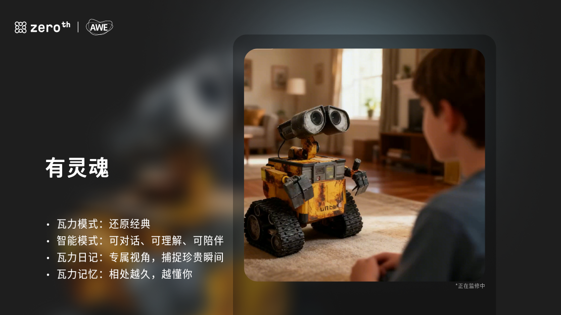 此外,基于迪士尼正版授权的小瓦力家庭陪伴机器人作为彩蛋产品亮相,支持陌生人识别、实时告警、远程查看、双向语音及异常检测等功能。