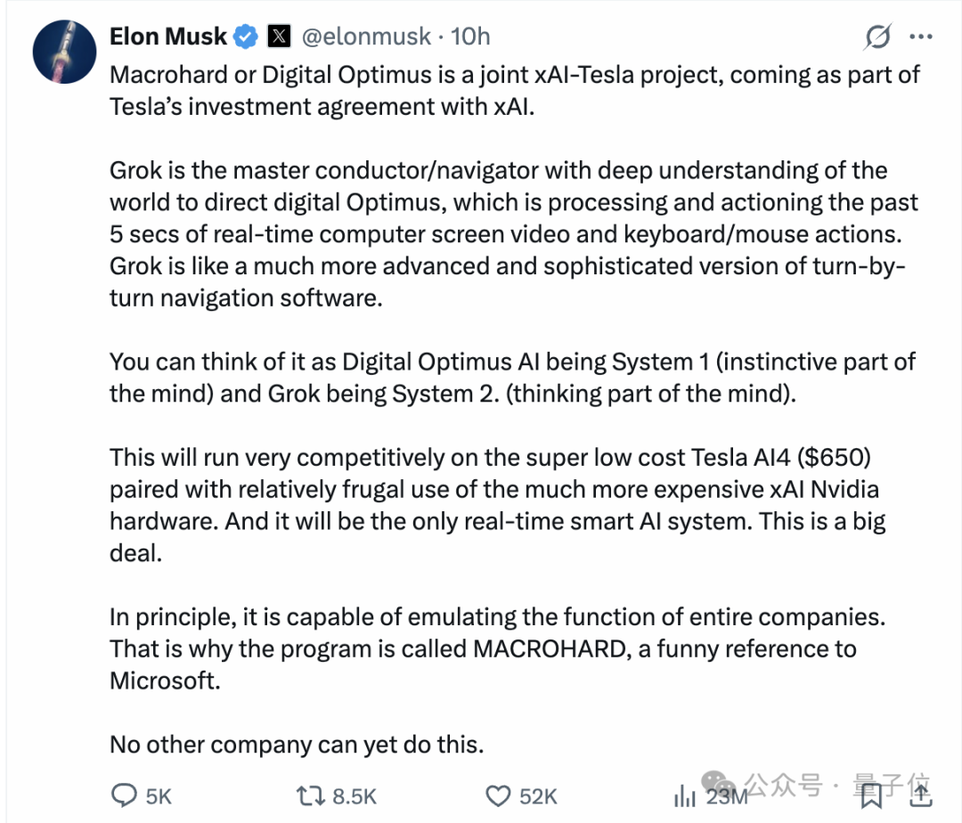 毕竟,老马前不久刚披露了“巨硬/数字擎天柱”的最新动态。