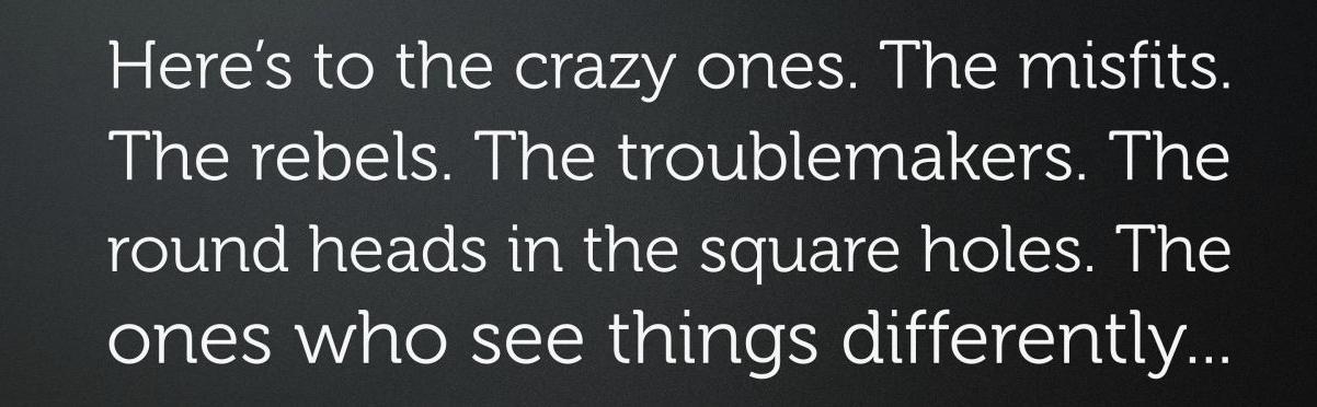 这句话恰好呼应了1997年苹果Think Different经典广告中的语录。