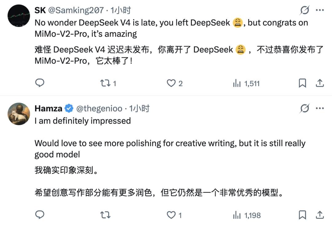 巧合的是,罗福莉正是 DeepSeek 的前研究员,换句话说,来自 DeepSeek 的她,在小米做了让全网以为是 DeepSeek 的模型。
