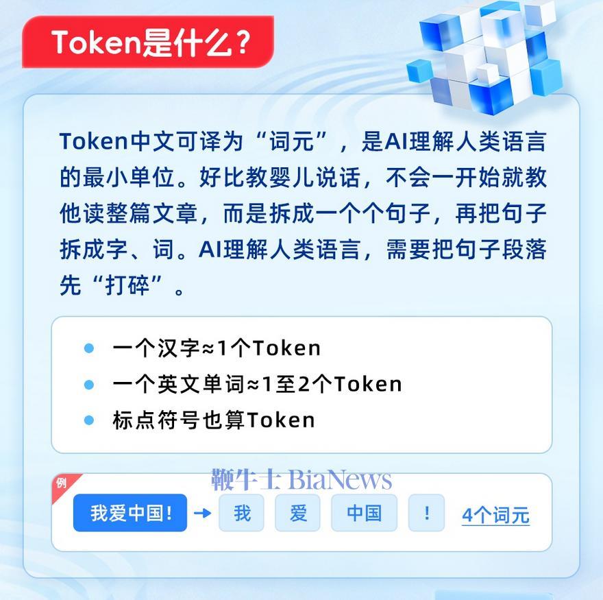 据人民网的解释,“词元”是AI理解人类语言的最小单位,token 切分出的单位有时是字,有时是词,而词更能覆盖这种范围。