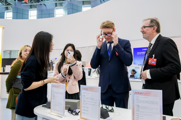 大会打造多元落地服务场景,为科技成果转化注入新动能。交易中心“橙果铺子”持续上新,助力科技新品首发首秀。裸眼3D显示器,卷轴屏,AI眼镜,五指抓握力达330N、闭合仅需0.2秒的仿生拉压体灵巧手应手Y-Hand M2,面向大模型训练与推理场景、性能卓越的昆仑芯P800 OAM模组……一批“可视、可听、可感”的前沿科技产品在这里集中亮相。